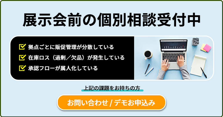 販促業務に関するお悩みをお持ちの企業様は、ぜひブースへお立ち寄りください。